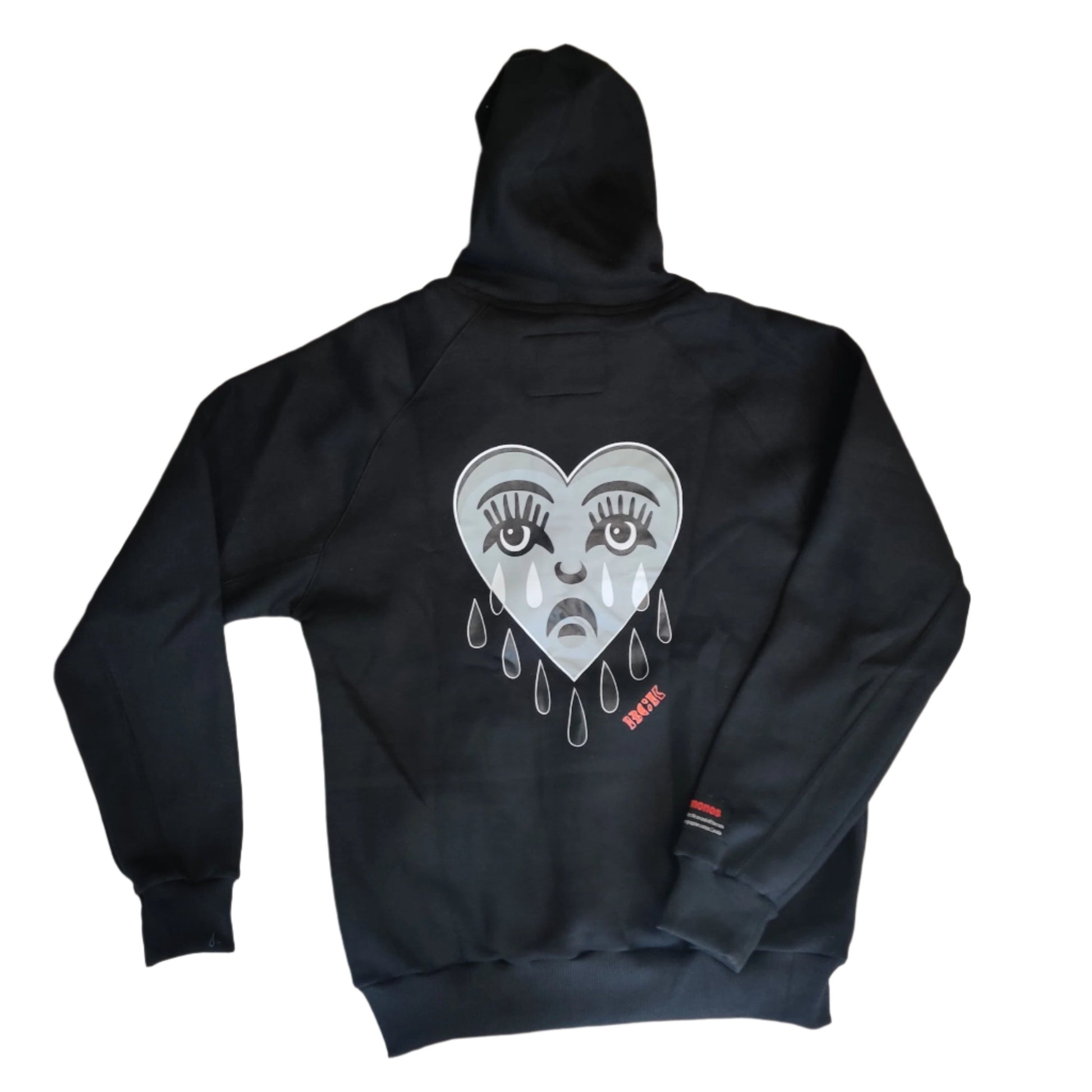 Searching for the perfect hoodie? Look no further. This unisex fit hoodie is made with a soft and warm poly/cotton blend and has a silky inner hood that wont pill or irritate your skin. Our BJJ hoodies are cut with a smaller hood than normal so when you’re getting blasted by the wind on the way to the gym or warming up before a competition match you can rest assured your hood will stay in place. In addition to being ultra soft and thick our hoodies all feature an oversized front pocket and you'll find embroidered sleeve and pocket patches. Our Broken Hearts Hoodie is a black on black zip up with a large traditional crying heart on the back. Perfect for youth and adult grapplers.